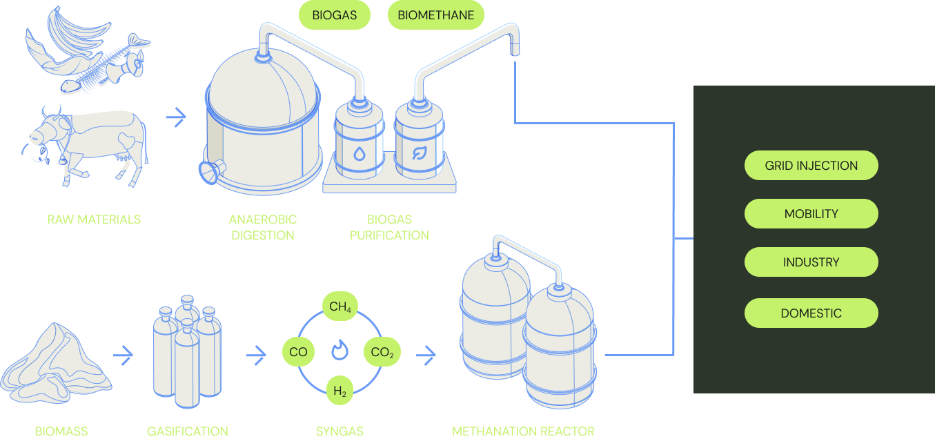 Biomethane is a renewable gas composed of 95% to 100% methane.